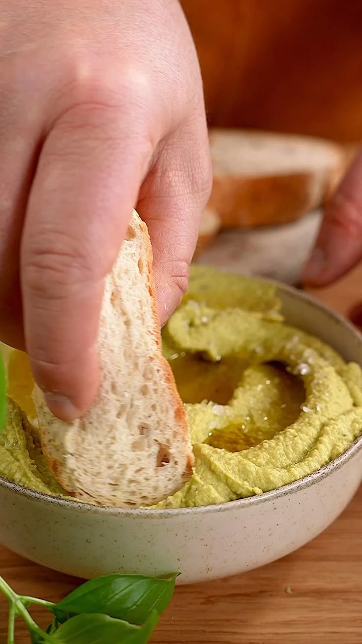 Der Dip lässt sich wunderbar vorbereiten und im Kühlschrank bis zu zwei Tage lagern. Wichtig: Die Oberfläche am besten mit etwas Olivenöl abdecken oder mit Frischhaltefolie direkt bedecken – so bleibt die Farbe schön grün. Beim Servieren kannst du zusätzlich Granatapfelkerne, Sesam, Chiliöl oder geröstete Nüsse darüberstreuen – je nachdem, worauf du Lust hast.